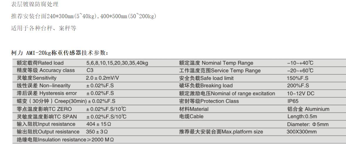 wpc廣州南創(chuàng)電子科技有限公司 wpc廣州南創(chuàng)電子科技有限公司寧波柯力稱重傳感器AMI-30kg產品技術參數(shù):wpc廣州南創(chuàng)電子科技有限公司