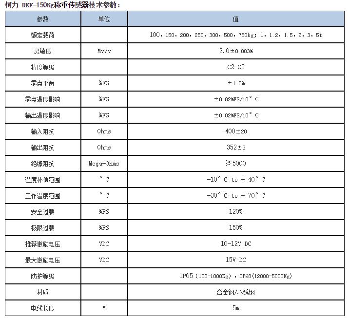 柯力 DEF-SS-50kg稱重傳感器型號類別技術參數選型安裝等資料信息,如果有關
