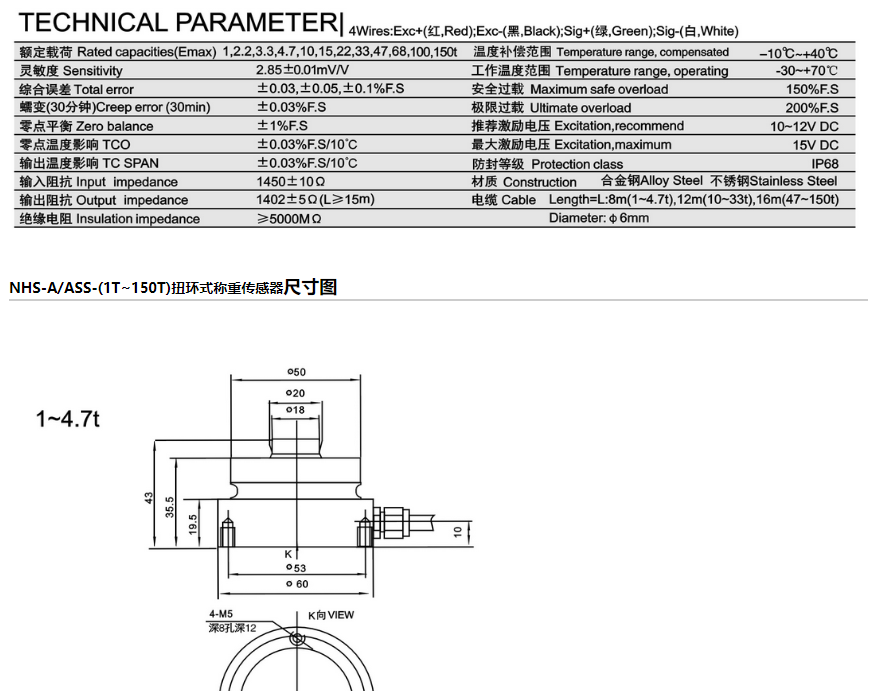 柯力 NHS-SS-33t稱重傳感器型號類別技術參數選型安裝等資料信息,如果有關