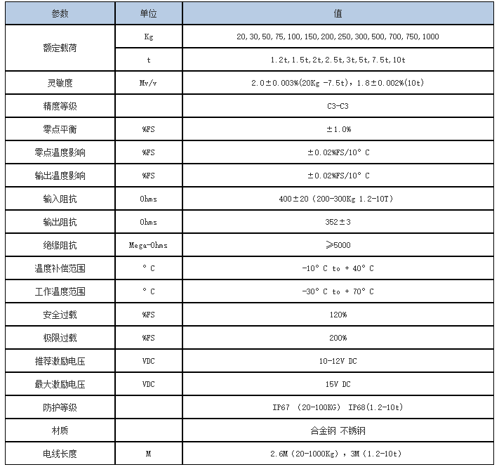 柯力 PST-100kg稱重傳感器型號類別技術參數選型安裝等資料信息,如果有關