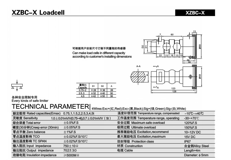 QFQ廣州南創電子科技有限公司XZBC-X傳感器量程:0.75t/1t/1.5t/2t/2.5t/3t/4t/5t。