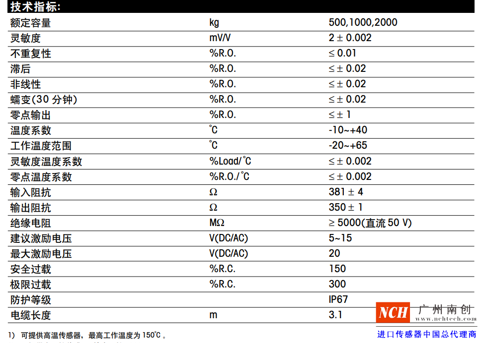 托利多SBC稱重傳感器絕緣電阻 MΩ ≥5000(直流50V)