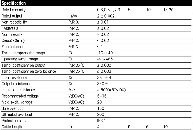 梅特勒托利多稱重傳感器SB-1T 產品參數:gCr廣州南創電子科技有限公司