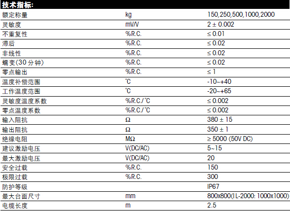 梅特勒托利多稱重傳感器IL-500kg產品參數:rgk廣州南創電子科技有限公司