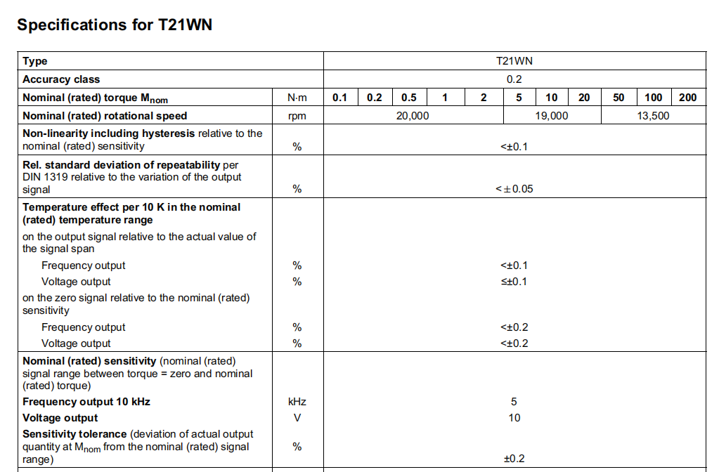 T21WN 扭矩傳感器: 扭矩測量最高到 200 Nm