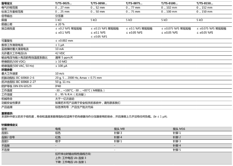 Avb廣州南創(chuàng)電子科技有限公司諾沃泰克novotechnik直線位移傳感器磁致伸縮傳感器,非接觸式磁致伸縮NOVOSTRICTIVE測量技術(shù);傳感器和測桿完全集成于液壓缸中,絕對值輸出,O型磁塊進行非接觸直線位置測量;無限的機械壽命;特別適用于移輛應(yīng)用。絕對位置輸出傳感器TM1可以直接安裝于油缸內(nèi)部,實現(xiàn)緊湊和經(jīng)濟型位置測量。因為耐壓不銹鋼法蘭和測桿完美焊接,故該傳感器可以應(yīng)用于極端惡劣場合。磁致伸縮原理保證優(yōu)異的測量精度,量程最高可達2000毫米。無源環(huán)型磁塊非常便于機械耦合。