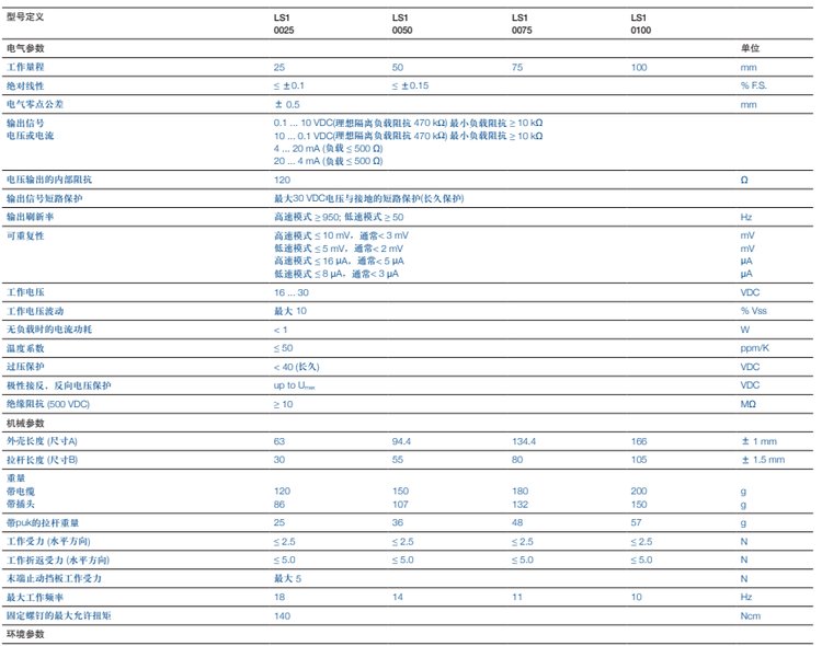 產品型號:LS1系列直線位移傳感器hri廣州南創(chuàng)電子科技有限公司