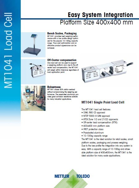 了解瑞士METTLER TOLEDO MT1041-20稱重傳感器更多詳情行情,請來電咨詢或者登錄我司官網http://www.zmds.net,找銷售3部高小姐獲取最新信息。