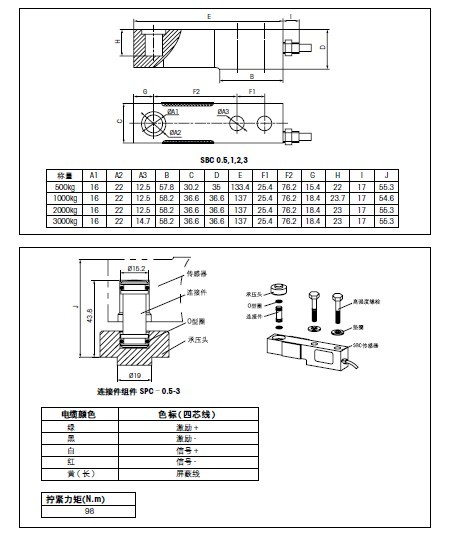 瑞士METTLER TOLEDO SBC-2t稱重傳感器技術(shù)參數(shù)圖: