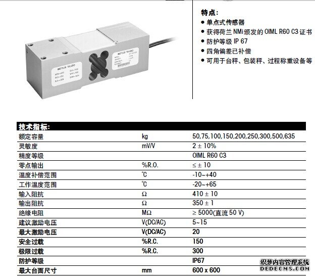 Mettler Toledo MT1260單點式稱重傳感器其它相關產品信息:
