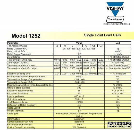 美國Tedea-huntleigh稱重傳感器;可查找了解1252-75kg傳感器具體技術參數及相關系列產品型號等信息。