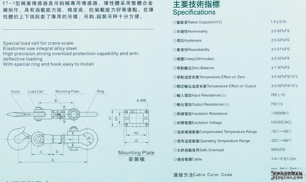 美國AC稱重傳感器 ET-1-20T連接方式: