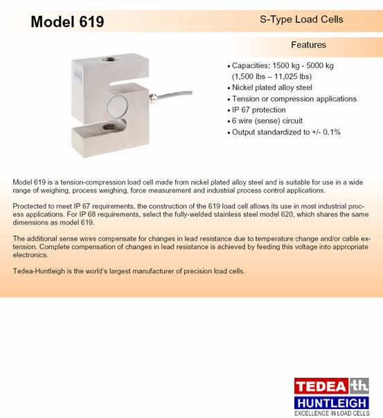 美國Tedea-Huntleigh 619-2000kg稱重傳感器,特迪亞619-2T,TEDEA 619-3T傳感器S型稱重傳感器所有型號: