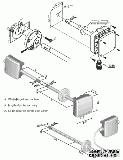 奧地利E+E EE66-VC風速變送器產品尺寸圖:tG3廣州南創電子科技有限公司