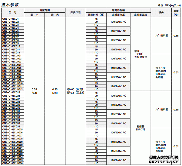日本鷺宮ONS型油壓保護用壓差控制器部分型號如下:skD廣州南創電子科技有限公司