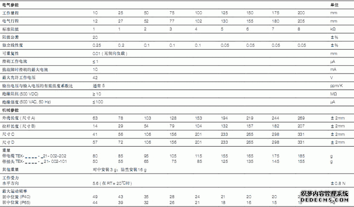 德國Novotechnik TEX-0050直線位移傳感器產品參數圖:ve2廣州南創電子科技有限公司