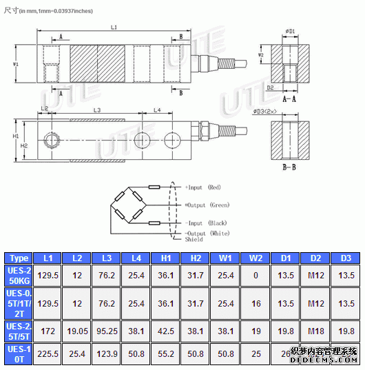 臺灣UTE UES系列稱重傳感器產品參數圖:vyH廣州南創電子科技有限公司