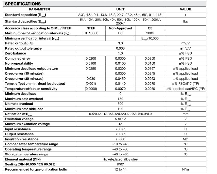 Kq2廣州南創電子科技有限公司84153: DEB 9223-B10-125k 125000lb 40 ft RTI 3mv/v 700 Ohm WW NTEP IIIL 10 M FM SST