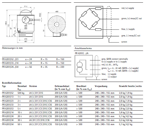 賽多利斯Sartorius PR6201系列稱重傳感器所有量程如下;9gZ廣州南創電子科技有限公司