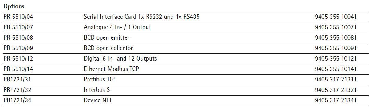 賽多利斯Sartorius稱重傳感器PR5510儀表選件: