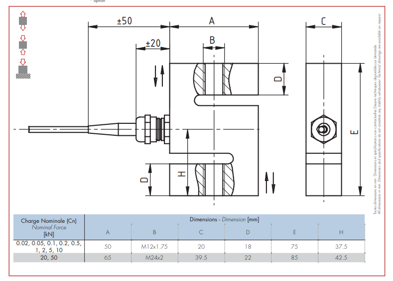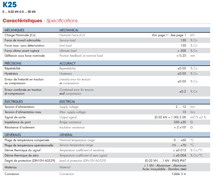 法國世感Scaime力傳感器K25-500N產品參數圖: