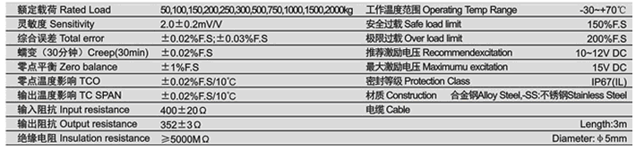 美國Suncells稱重傳感器IL-500kg技術參數圖:ZBY廣州南創電子科技有限公司