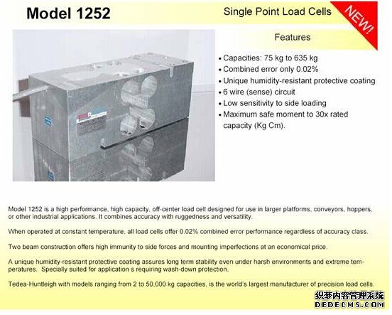 美國特迪亞1252-100kg傳感器特性:rTx廣州南創電子科技有限公司