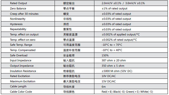 美國Transcell稱重傳感器BSA-25kg產品參數:GVe廣州南創電子科技有限公司