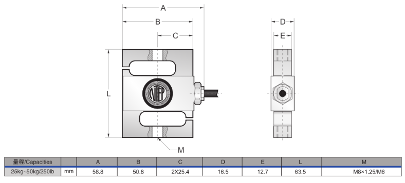 美國傳力BAB-150M稱重傳感器產品技術參數: