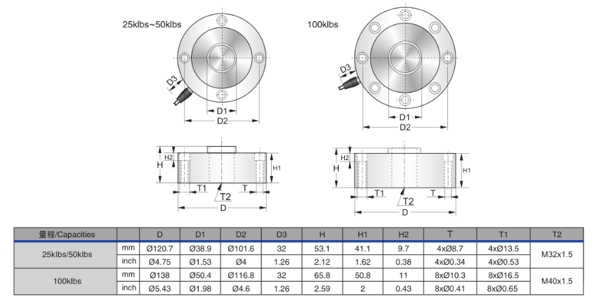 量程范圍:25Klb,50Klb,100KlbuNu廣州南創電子科技有限公司