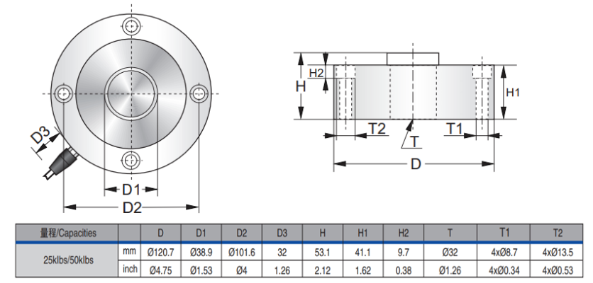 puB廣州南創電子科技有限公司美國傳力Transcell稱重傳感器PTSD-200KG尺寸圖:puB廣州南創電子科技有限公司