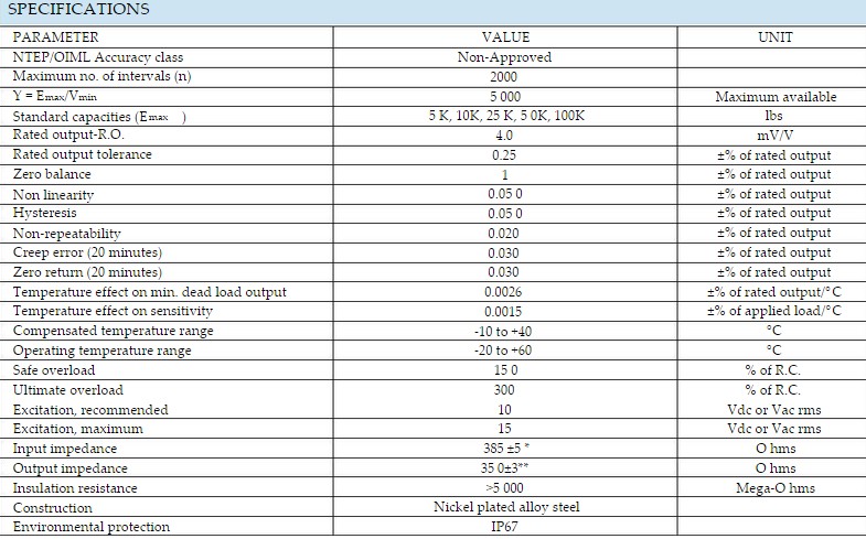 美國(guó)Celtron LCD-TT/M/MH-60T稱重傳感器系列稱重傳感器所有量程如下: