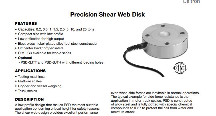 美國Celtron PSD-10tSJTT稱重傳感器特點: