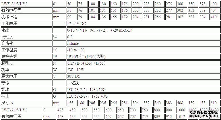 德國VOLFA LWF-650-A1直線位移傳感器參數圖:LdT廣州南創電子科技有限公司