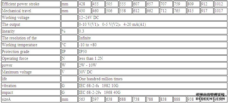 與德國VOLFA LWZ-650-A1直線位移傳感器同一系列不同量程型號:8pL廣州南創電子科技有限公司