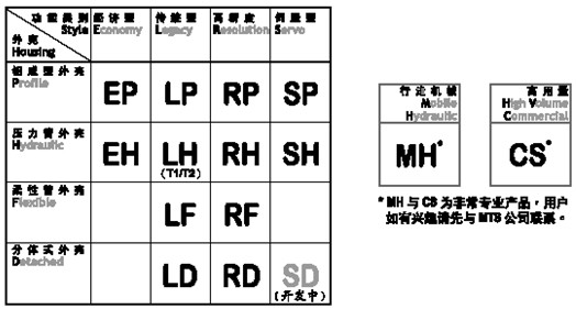 MTS位移傳感器型號對照表 MTS已成功開發三代傳感器,第三代基本分為4個系列,即價格相宜的經濟型E系列,取代傳統T1和T2型的L系列,為滿足高性能和高精度要求的R系列(曾定名為T3系列)和把伺服控制器加進傳感器的S系列,而這4個系列又同時為用戶提供不同類型的外殼設計以符合不同場合的應用,同樣分為4類,即以雞鴨成型鋁外殼的P型,能承受高壓力的不銹鋼外管的H型,外管柔軟的F型和把電子頭與測桿分體的D型。 以下是簡單的產品型號對照表,供用戶參考: ![]() |