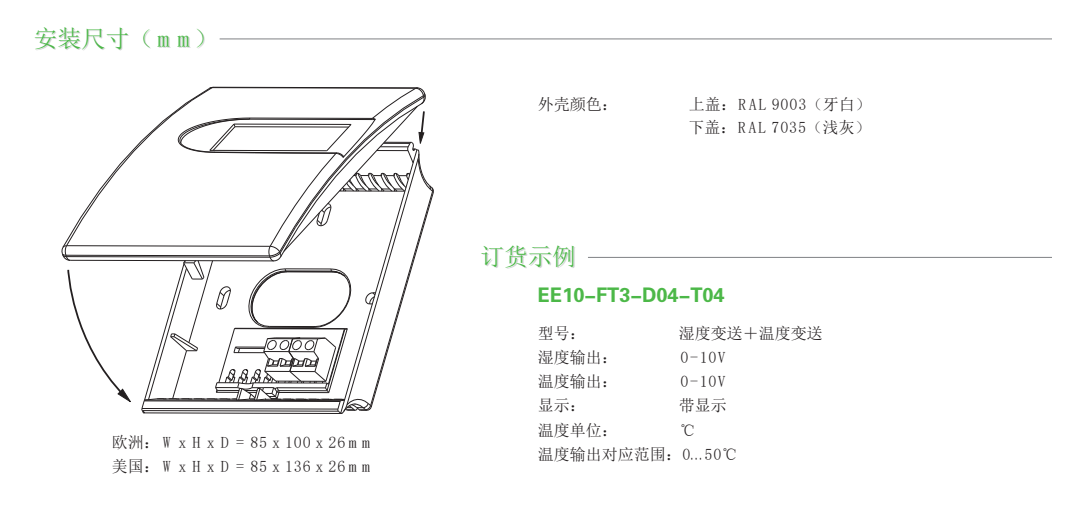 奧地利E+E全系列溫濕度傳感器, 暖通空調(diào)用室內(nèi)溫濕度變送器 , 系列溫濕度變送器專為暖通空調(diào)領(lǐng)域溫濕度測量而設(shè)計,適用于商業(yè)樓宇和常規(guī)建筑的BA系統(tǒng)。變送器采用 E+E高品質(zhì)的 HC103 濕敏元件,測量精度高。變送器外型設(shè)計美觀,安裝簡便。濕度輸出信號為標準4-20mA或0-10VDC信號,溫度輸出可選擇4-20mA或0-10VDC的標準信號或電阻輸出信號。系列有兩晶顯示模塊用以現(xiàn)場的溫濕度顯示。種外型設(shè)計以滿足不同地區(qū)標準,且所有產(chǎn)品都可以配置清晰的液25.7。