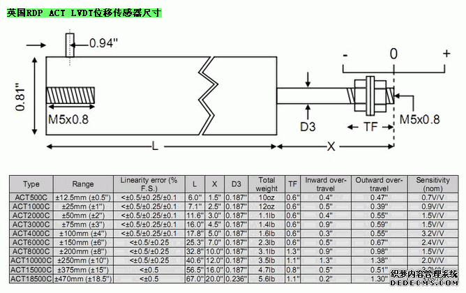 英國RDP ACT LVDT位移傳感器技術參數圖:KqG廣州南創電子科技有限公司