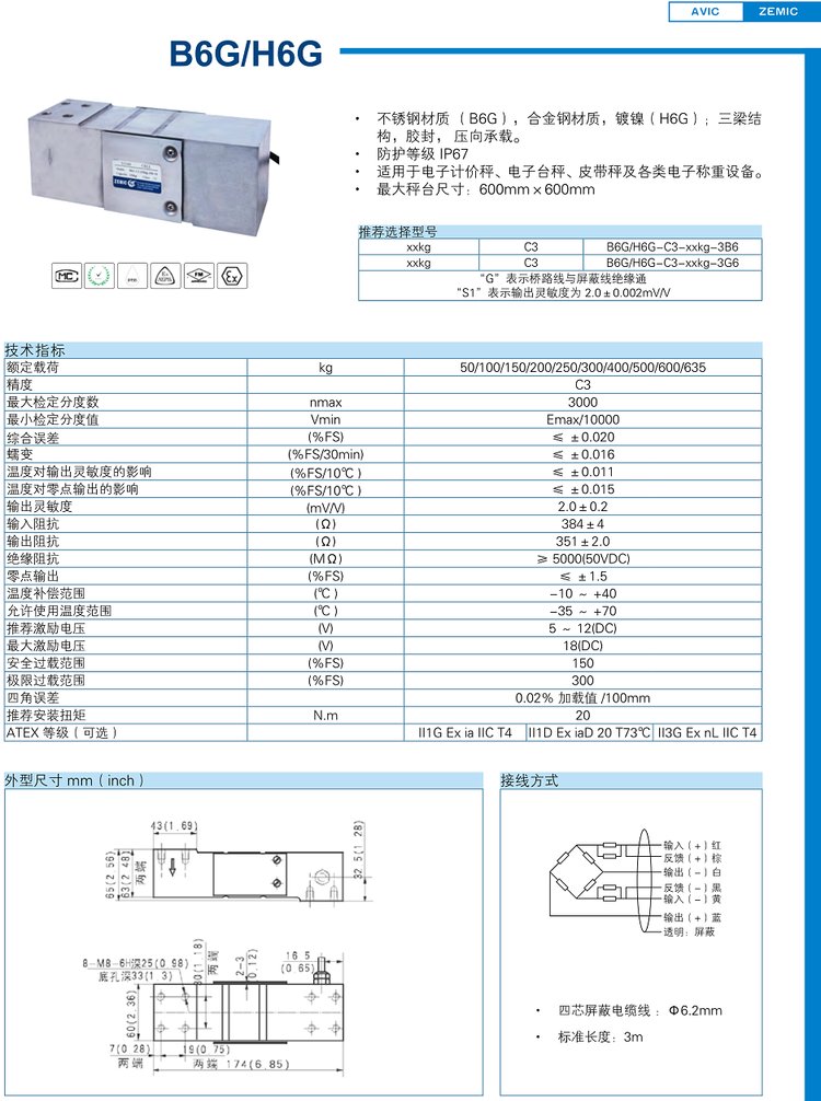 B6G-C3-200kg-3B6 ZEMIC LOAD CELL型號類別技術(shù)參數(shù)選型安裝等資料信息,如果有關(guān)